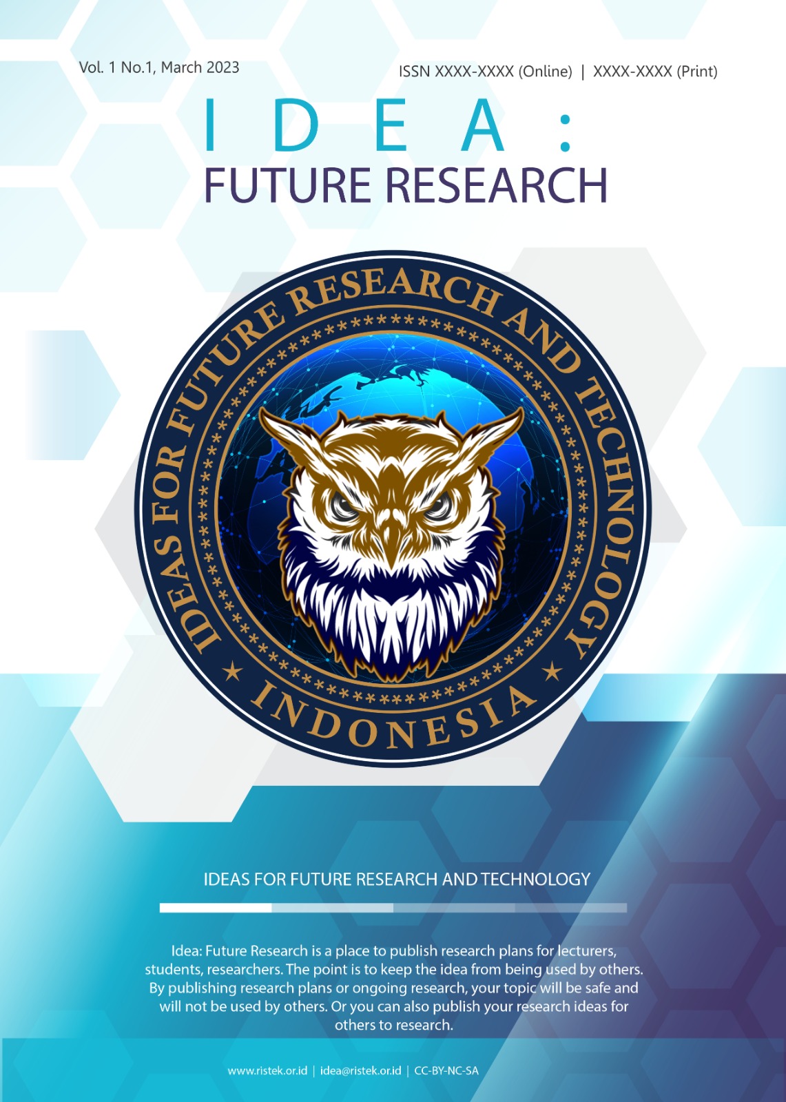 Vol. 1 No. 1 (2023)Idea: Future Research is a place to publish research plans for lecturers, students, researchers. The point is to keep the idea from being used by others. Idea: Future Research is equipped with ISSN print and online versions. By publishing research plans or ongoing research, your topic will be safe and will not be used by others. Or you can also publish your research ideas for others to research.